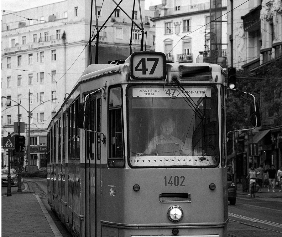 I waited near Deák Ferenc tér, where the tracks curve between the grand, Austro-Hungarian facades. I didn’t want a clean shot. I wanted the grit. The goal was to capture the tram not as a static object, but as a moving force cutting through the stillness of the stone architecture.